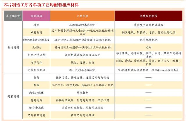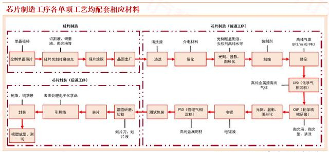 2、芯片制造工序中各单项工艺均配套相应材料