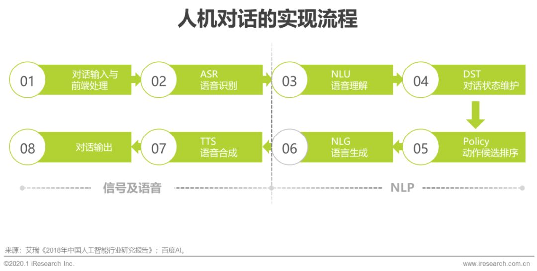 智能语音即实现人与机器以语言为纽带的通信。人类大脑皮层每天处理的信息中,声音信息占20%,它是沟通最重要的纽带,人机对话将方便人们的工作与生活。完整的人机对话包括声音信号的前端处理、将声音转为文字供机器处理、在机器生成语言之后,用语音合成技术将文本语言转化为声波,从而形成完整的人机语音交互。