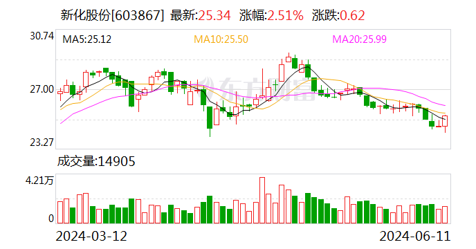 中证智能财讯新化股份(603867)6月11日晚间公告,基于公司战略发展及业务需要,公司第六届董事会第九次会议审议通过《关于宁夏新化化工有限公司合成香料产品基地新增7155吨/年产品建设项目的议案》,同意宁夏新化化工有限公司建设“宁夏新化化工有限公司合成香料生产基地新增7155吨/年产品建设项目”,项目建成后将新增2-甲基丁酸酯、α-甲基肉桂醛、丁位十二内酯等香料产品29种,年生产规模7155吨。项目总投资约6000万元。