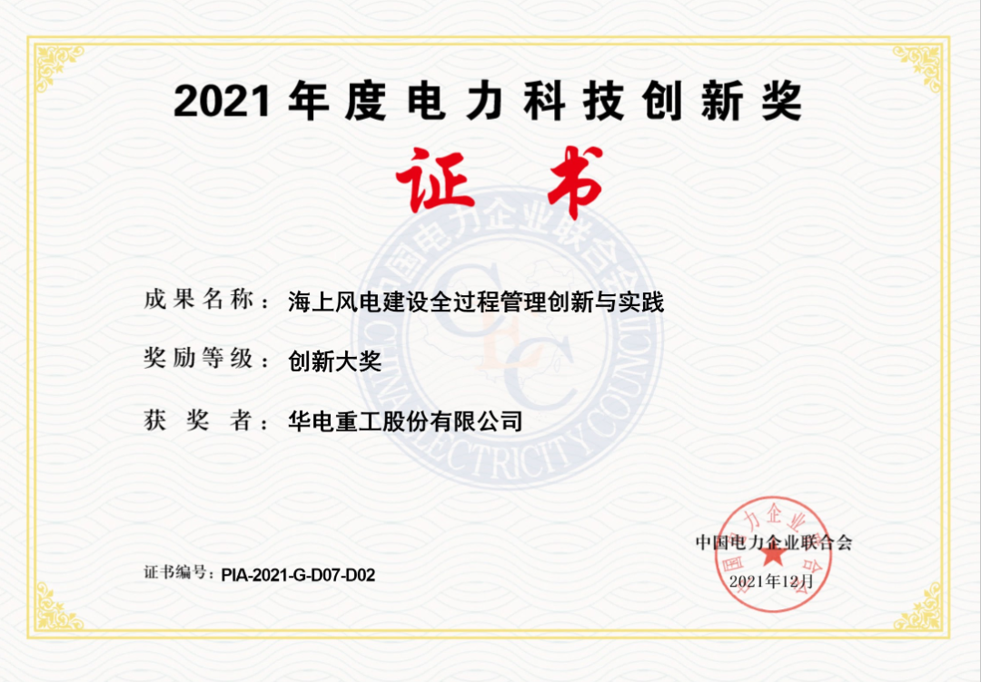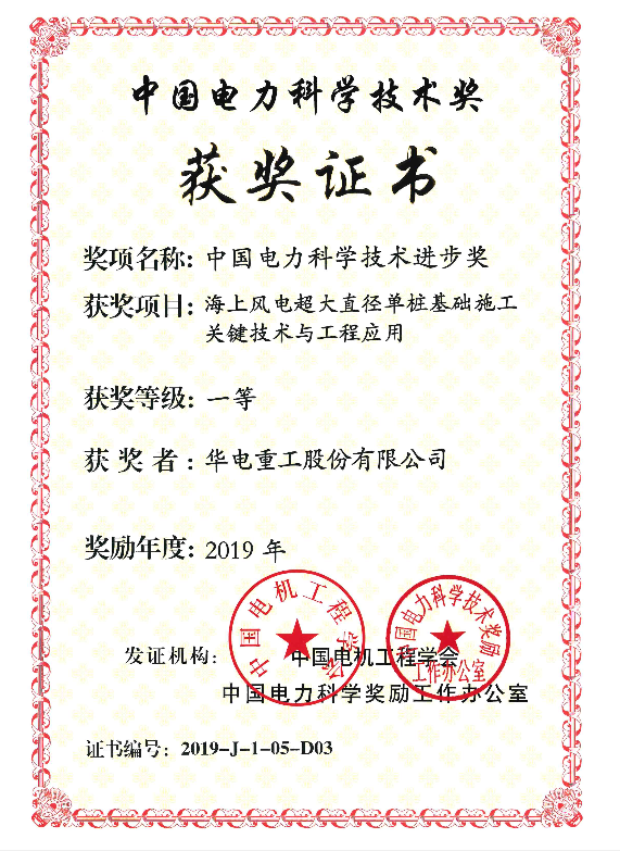 事业部先后获得中国电机工程学会、中国安装协会、中国机械工程学会、中电建协和中电联等单位或行业协会奖项29项。自主研发的《海上风电超大直径单桩基础施工关键技术研究与应用》荣获2019年度中国电力科学技术奖一等奖,《海上风电建设全过程管理创新与实践》荣获2021年度电力创新大奖,《坐底式风电安装船风机安装施工关键技术研究与应用》荣获2022年电力建设科学技术进步奖一等奖,《海上风电新型筒型基础与高效安装成套技术》荣获2020年天津市科学技术发明特等奖等。