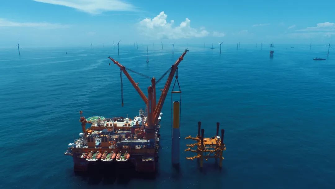该项目位于浙江省南部玉环县近海,项目所在海域淤泥质土厚达40余米,加之不规则长周期涌浪影响,自升式平台无法稳固插桩,船机资源极其稀缺。公司攻坚克难,逐一击破施工难题,项目于2021年12月24日实现全容量并网发电,顺利完成“保电价”任务。