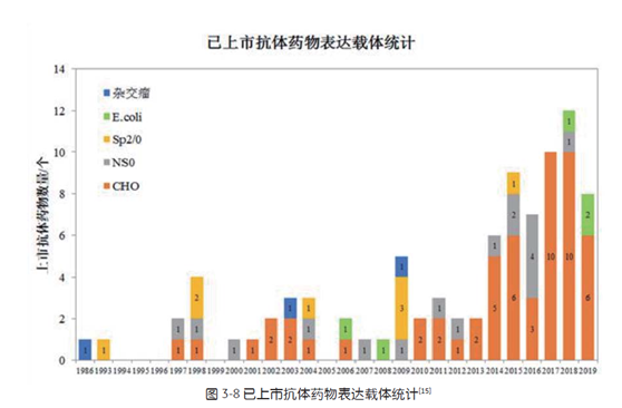 因 Non IgG-like BsAb 结构相对简单,没有 Fc 区域的糖基化修饰等蛋白翻译后加工,因此可以选用大肠杆菌和酵母等表达体系,目前上市的抗体类似药物也不乏使用此类表达体系的产品,如:罗氏的 Ranibizumab、 UCB 的 certolizumab pegol、阿斯利康的 moxetumomab pasudotox-tdf、诺华的 brolucizumab 以及赛诺菲的 Caplacizumab-Yhdp;2020年 FDA 也批准了丹麦灵北制药预防偏头疼药物 Eptinezumab,迎来了首个以酵母为表达载体的单抗药物。使用酵母或者大肠的表达平台显然其生产的成本是要优于哺乳动物细胞平台,培养周期短,可以进行高密度的大规模发酵,而且也省去了后期病毒清除验证的成本,大大的减少了研发周期,在成本控制战激烈的当下也不失为一个新的研究方向。