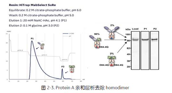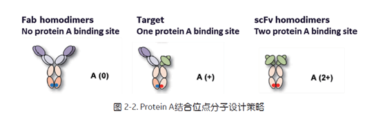 通过阻断重链恒定区 Protein A 结合位点的分子设计策略可有效简化同源二聚体的去除 (图2-2)。