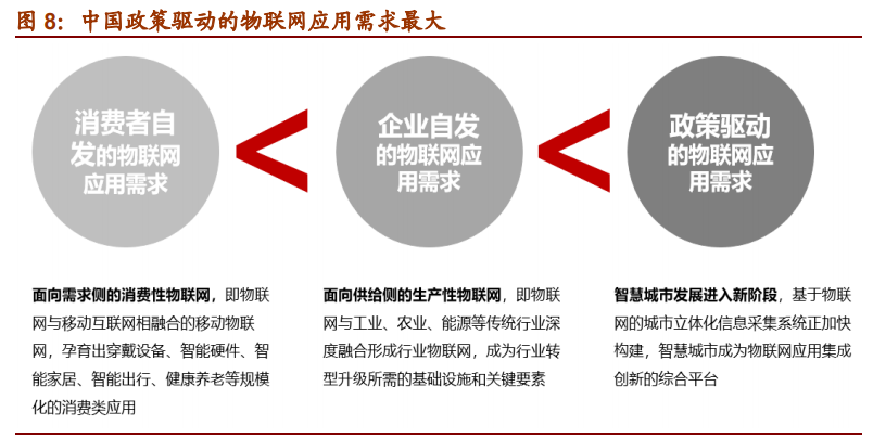 就具体的物联网单品应用来看,物联网重点应用场景主要包括无线支付、消费电子、车联网、安防监控、无线网关、智能表计。