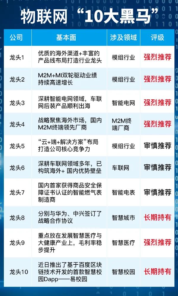 最后,是我们为大家精心筛选出的物联网“10大黑马”名单。