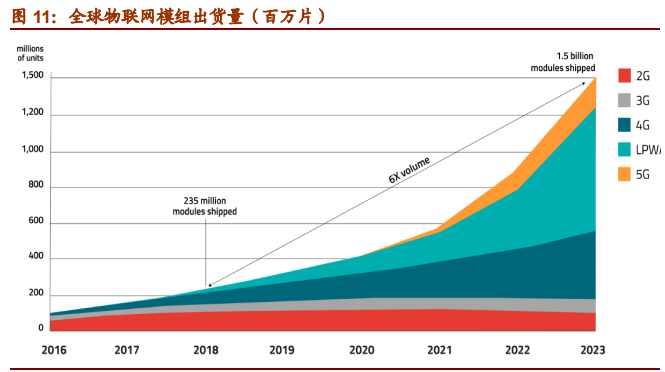 物联网模组是物联网行业当前确定性最高、落地最早的产业链环节。而物联网连接数则是物联网模组行业景气度的风向标。