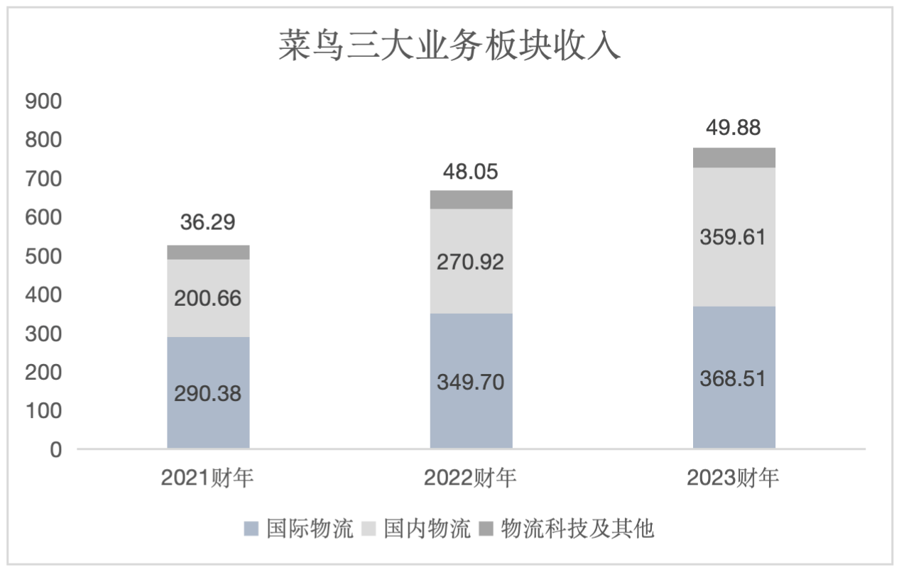 注:阿里2023财年年报中,菜鸟收入为556.81亿元
