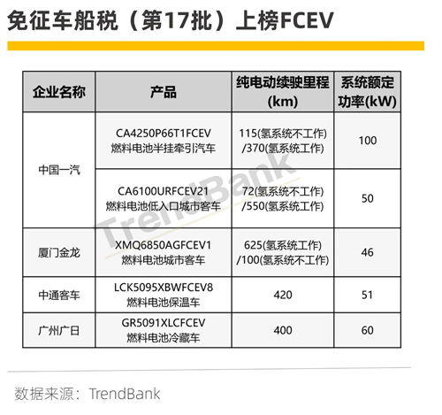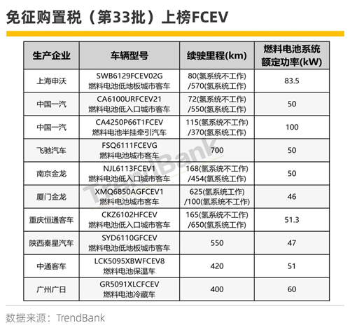 其中,陕西秦星汽车有限责任公司、重庆恒通客车有限公司是首次上榜燃料电池汽车产品。