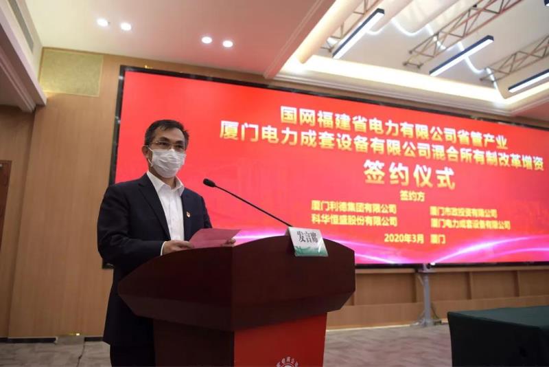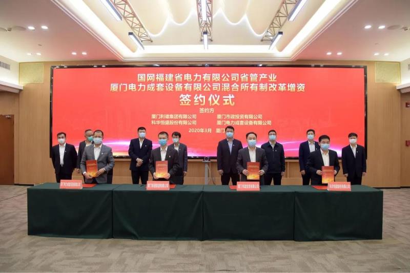 全国疫情防控形势持续向好、生产生活秩序加快恢复之际,3月20日国网福建电力省管产业厦门电力成套设备有限公司混合所有制改革增资签约仪式在厦门举行。这是福建电力首家实施混合所有制改革的产业单位,为坚持两手抓、夺取双胜利再添新动能。科华恒盛(股票代码 002335)与厦门市政集团旗下厦门市政投资有限公司共同入股,强强联手打造能源服务领域新“硬核”。