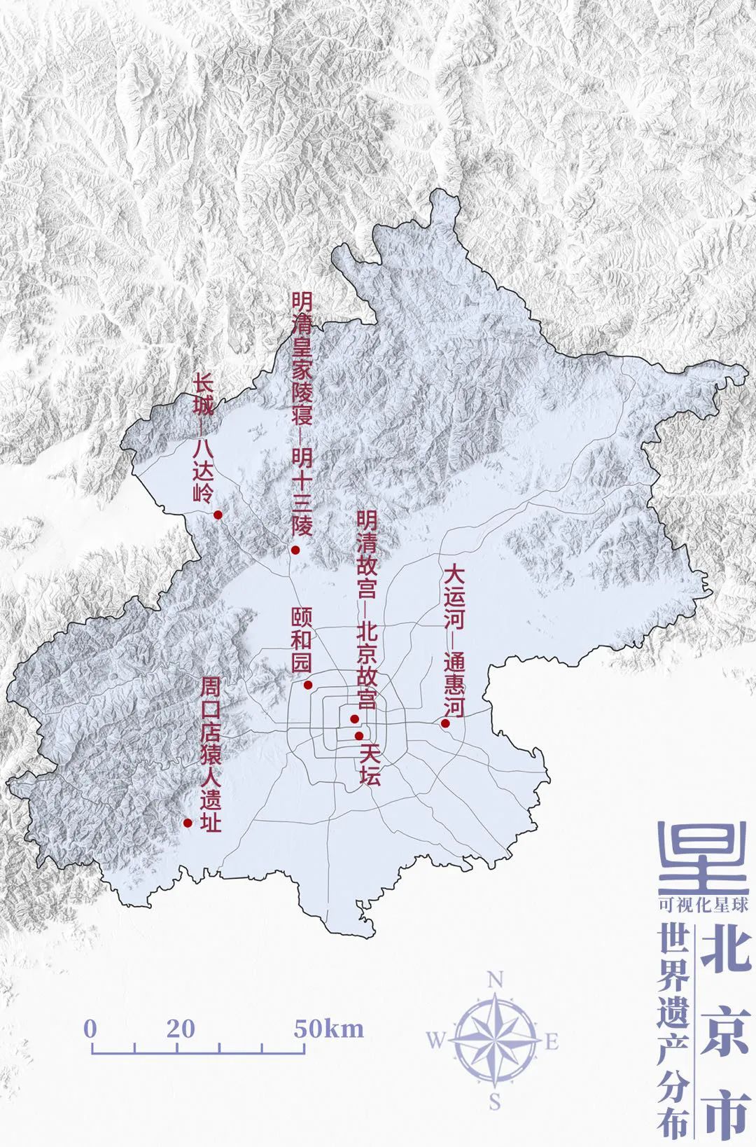 北京市世界遗产地图 数据源自:邬宏《中国世界遗产全记录》| 制图@巩向杰&张靖/可视化星球