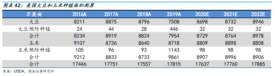 我们测算,2020-2021年美国大豆种植面积会恢复到2018年水平,接近8700万英亩。