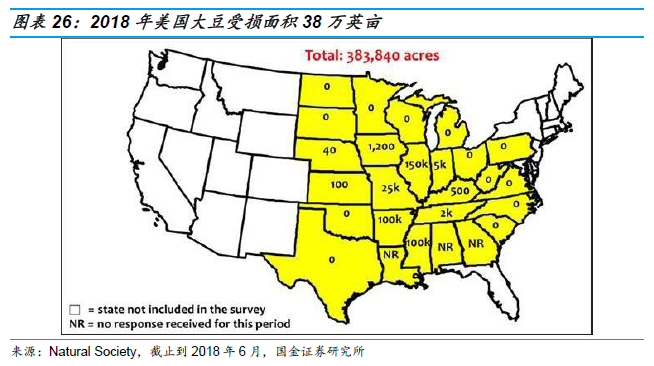 玉米预防种植申请达到1140万英亩,我们认为主要是大部分想要种植大豆的农民选择了申请玉米阻止补偿。因为玉米预防种植补贴比大豆高30%以上,玉米种植补偿是284美元/英亩,而大豆种植补偿是202美元/英亩。