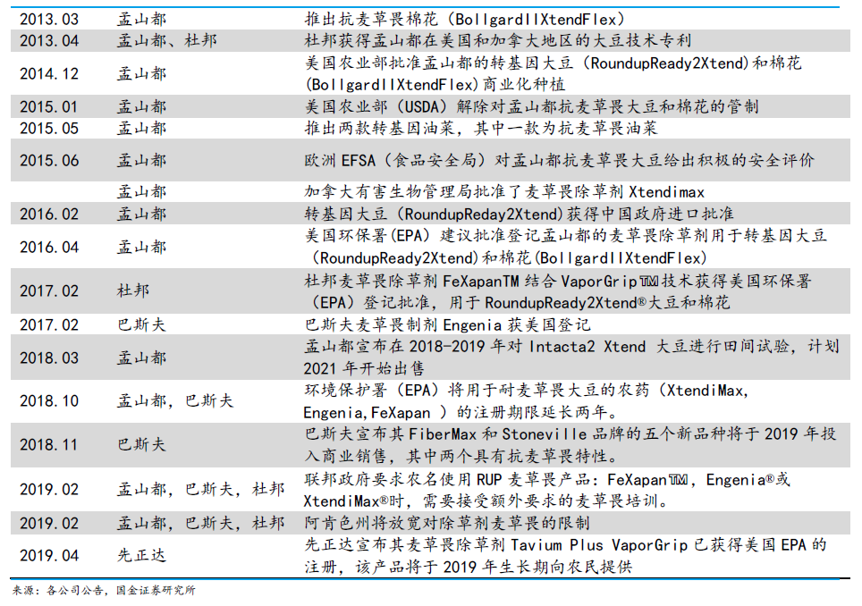 我们认为只有主要消费国批准进口或者使用耐麦草畏作物,耐麦草畏作物种植面积才能提升,当前耐麦草畏大豆已经具备这个条件。