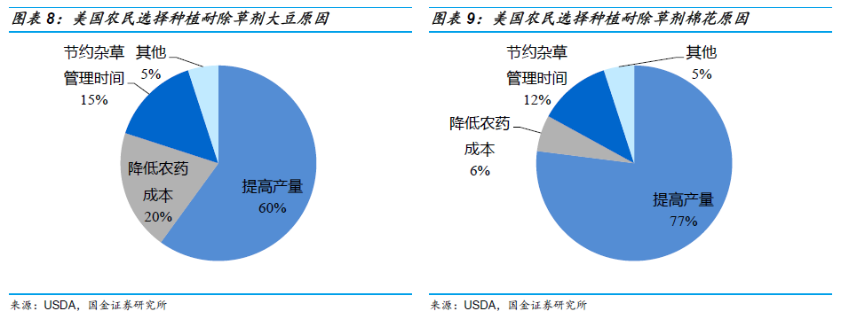根据美国农业部调查,美国农民采纳耐除草剂作物的原因主要有三个: