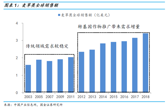 2.1 纵观历史,草甘膦增量主要来自转基因作推广