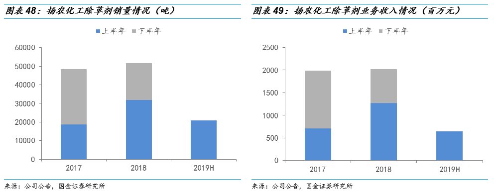 虽然草铵膦、麦草畏成本远高于草甘膦,但草甘膦+麦草畏或者草甘膦+草铵膦+麦草畏混配不仅除草效果好,而且成本低,基本不会超出农民的承受范围,我们认为,未来草铵膦、麦草畏都具有更大的市场空间。