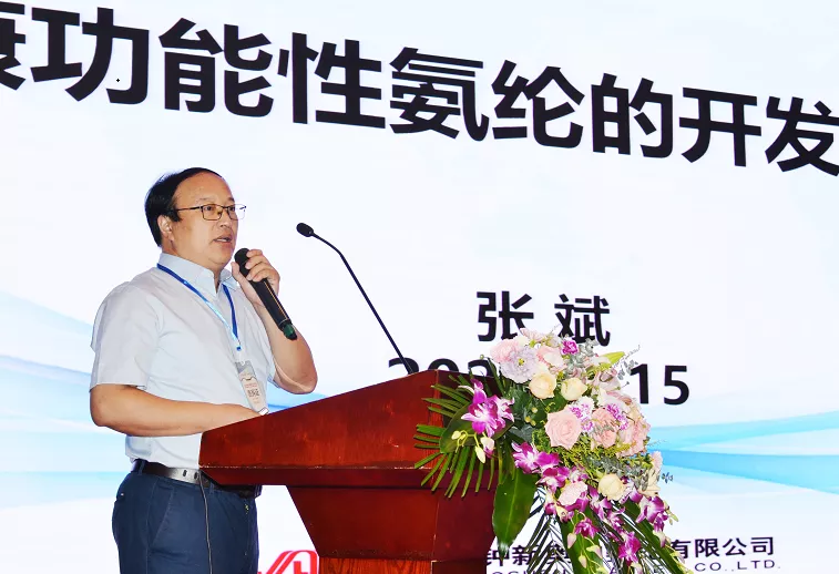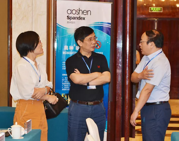奥神氨纶总经理张斌介绍了公司新投放市场的抗菌防臭、芳香驱蚊、低熔点热粘合氨纶等新产品。