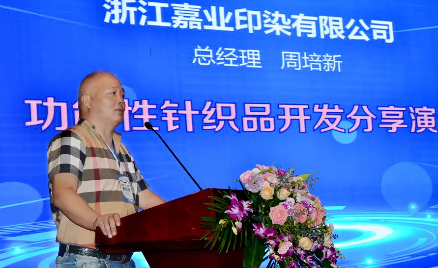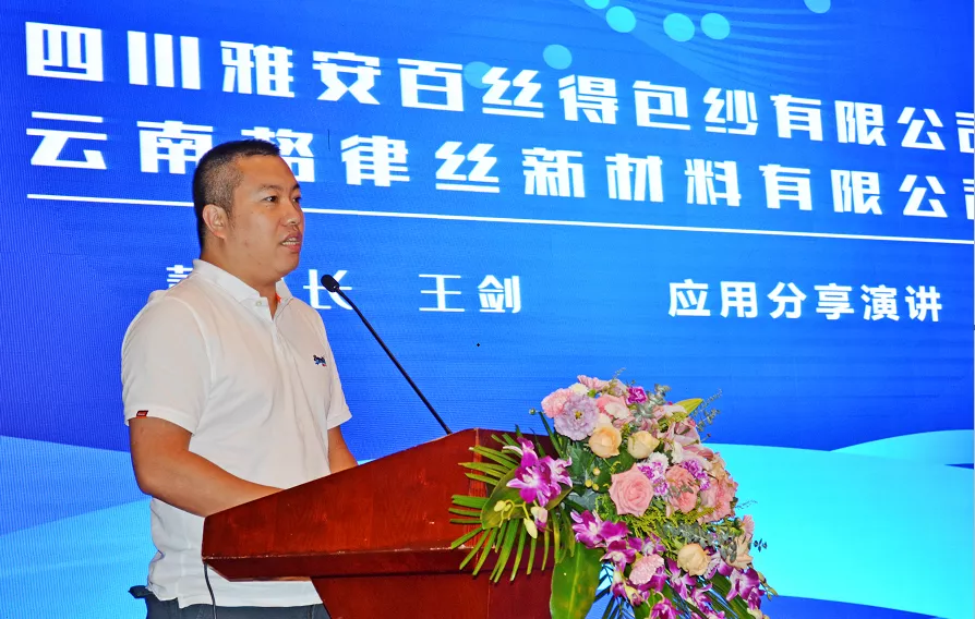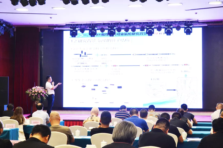 奥神氨纶研发部副部长曾登做了可染氨纶应用方面的报告。
