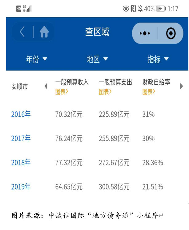 在经济下行压力加大、减税降费背景下,2019年地级市财政收支压力整体较大,超七成地级市财政平衡率较2018年有所回落,其中松原市、玉林市、锦州市、安顺市、七台河市、荆州市、鸡西市、黑龙江大兴安岭地区、毕节市及西藏山南地区回落幅度较大,财政平衡率回落地区集中于东北及西南经济欠发达区域。财政平衡率弱化主要由税收下降及部分领域支出增加所致,以贵州省安顺市为例,其2019年财政平衡率较2018下降约7个百分点,其中全市一般公共预算收入下降16%,市级税收下降15%,全市一般公共预算支出增加10%,城乡居民医疗保险的卫生健康支出增加、落实中央下达的水体治理的节能环保支出增加。