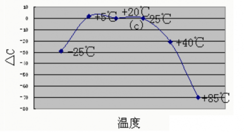 C0G、X7R、Z5U、Y5V 的温度特性、可靠性依次递减,成本也是依次减低的。在选型时,如果对工作温度和温度系数要求很低,可以考虑用 Y5V 的,但是一般情况下要用 X7R,要求更高时必须选择 C0G 的。一般情况下,MLCC 都设计成使 X7R、Y5V 材质的电容在常温附近的容量最大,容量相对温度的变化轨迹是开口向下的抛物线,随着温度上升或下降,其容量都会下降。
