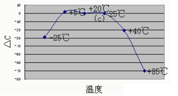 X7R 电容器被称为温度稳定型陶瓷电容器。X7R 电容器温度特性次于 C0G,当温度在 -55℃到+125℃时其容量变化为 15%,需要注意的是此时电容器容量变化是非线性的。